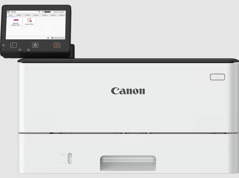 Canon imageFORCE 1440P to monochromatyczna jednofunkcyjna drukarka A4, zaprojektowana do użytku biurkowego z myślą o efektywności i prostocie obsługi. Model oferuje prędkość druku 40 stron na minutę i wyposażony jest w kolorowy ekran dotykowy TFT LCD 5 cali z intuicyjnym interfejsem. Urządzenie charakteryzuje się kompaktową, lekką konstrukcją oraz niskim zużyciem energii.